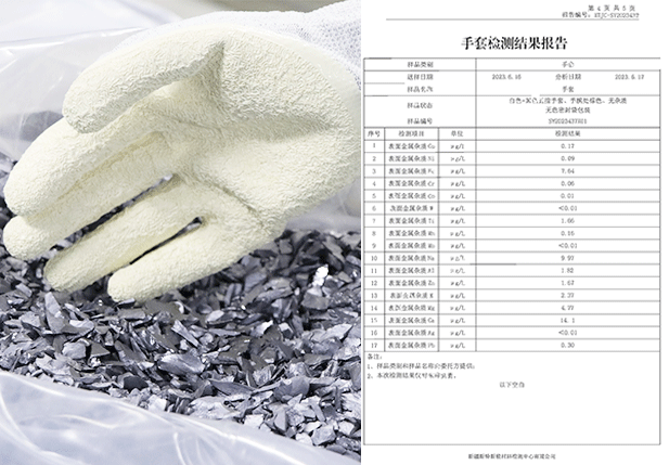 手套芯采用凱夫拉材質,經權威機構檢測屬于5級防割標準,針織采用無縫針織,針織密度高,防止硅粉及金屬碎屑進入手背,手掌涂層采用壓紋設計,具有良好的減震功能,手套制作完成以后經過6次清洗工藝處理,經權威機構檢測表金屬雜質低于45PPBW.
